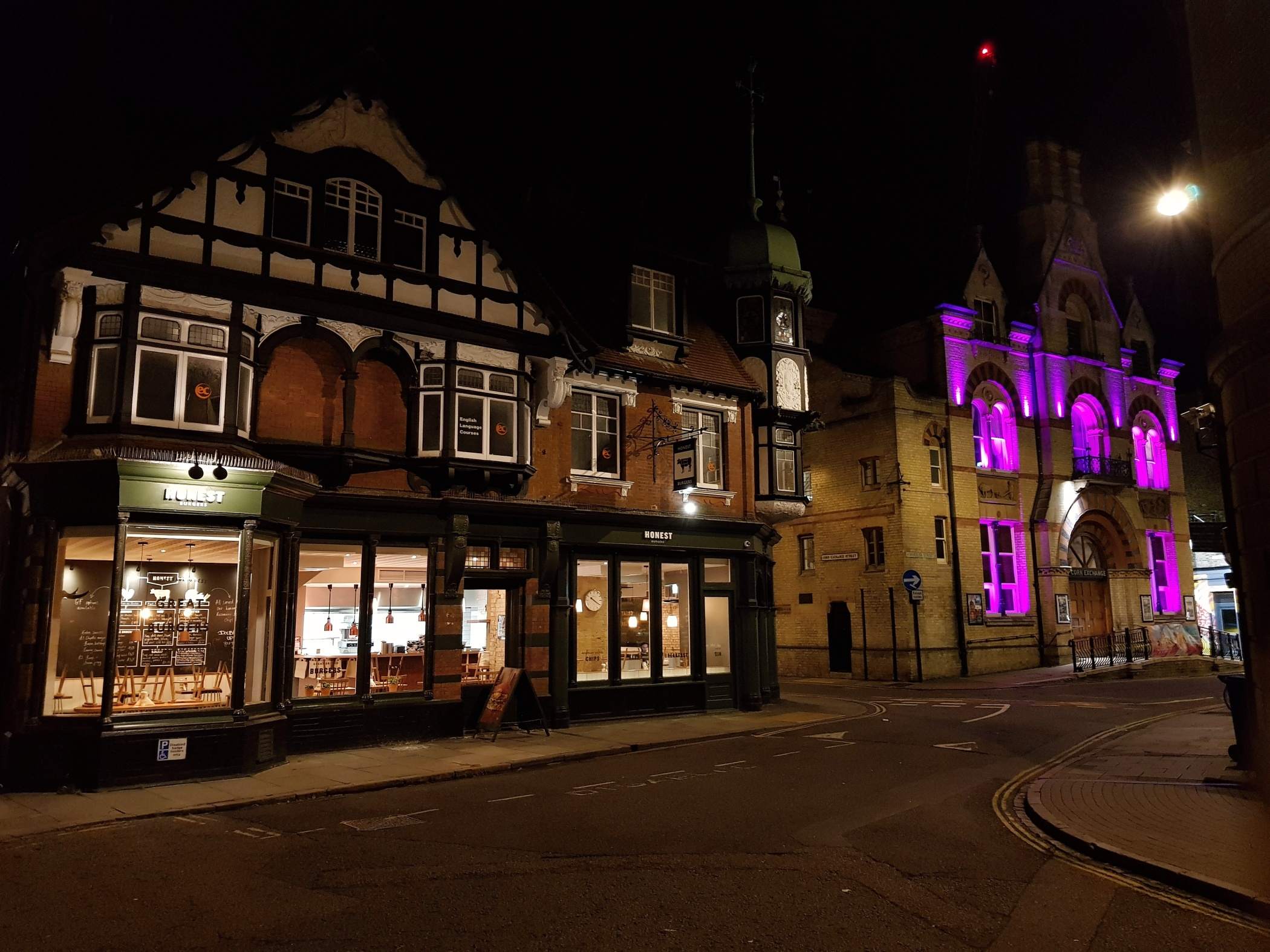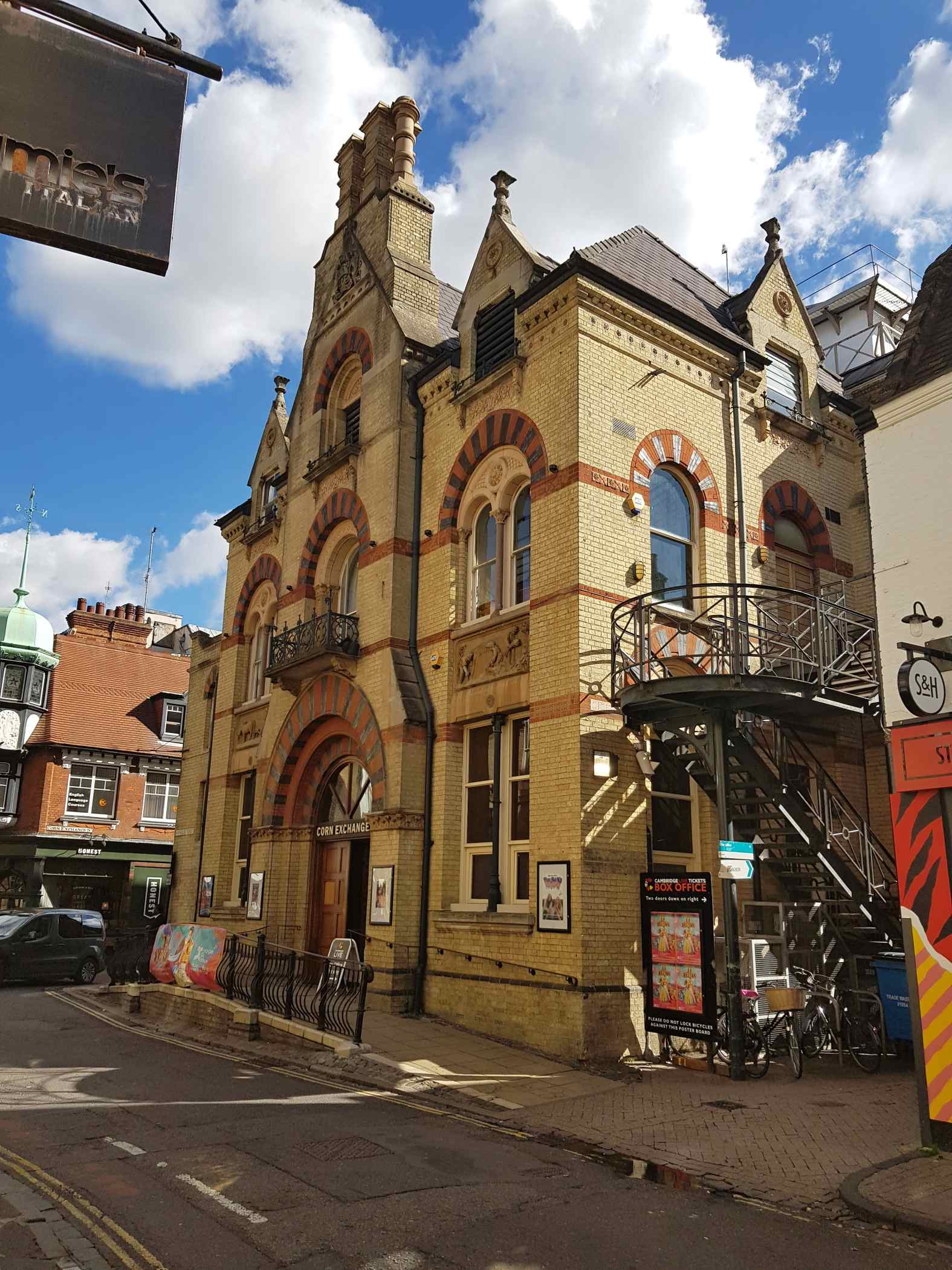 takže cambridge a setkání s pink floyd poprvé - po večerním příjezdu do města a ubytování v christ´s college jsme vyšli do vyprázděných ulic. historické univerzitní centrum je ve tmě uplně o ničem jiném, než přes den, takže i pohled na fialově osvícenou budovu ani v nejmenším nenapovídal, že se díváme na corn exchange (budova dřívější obilné burzy, kde měl syd barrett svůj úplně poslední koncert - bylo to 24.2.1972 se skupinou "stars" - a dopadl dost neslavně: syd utekl z podia...
