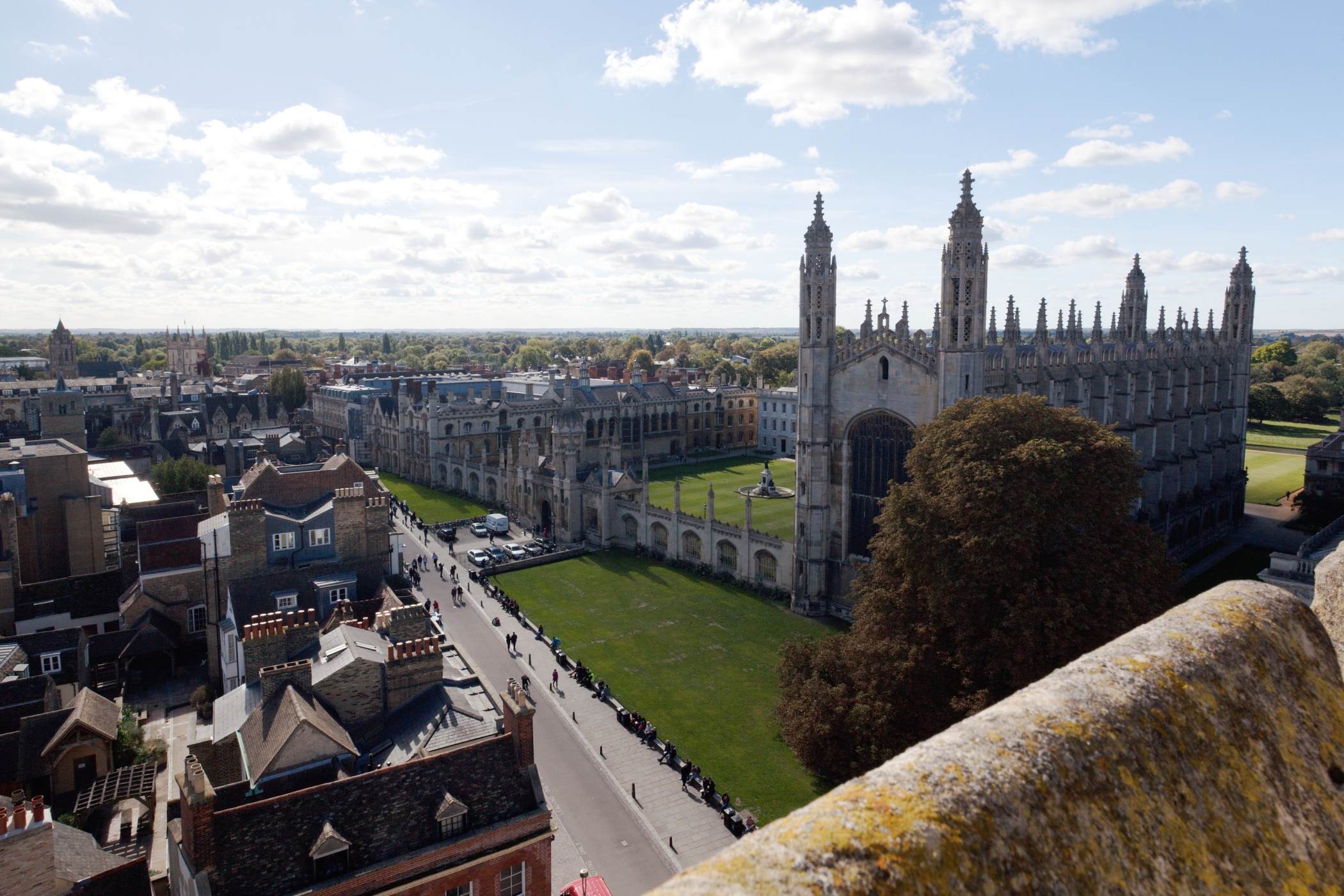 pohledy na centrum z vyhlídky na věži protestantského kostela great st. mary´s: